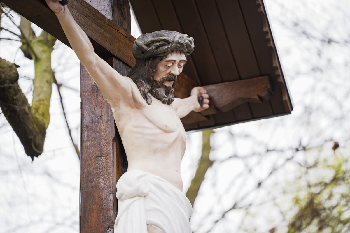 Widać, że figura Jezusa różni się detalami od tej, którą zapamiętaliśmy. Najbardziej widoczną (choć nie jedyną) zmianą jest kolor przepaski biodrowej.